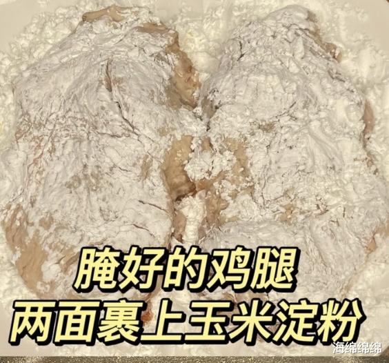 第二步,裹淀粉。腌制好的鸡腿肉两面均匀裹上一层玉米淀粉,这能让鸡腿肉煎的时候外皮更酥脆,锁住里面的水分。裹淀粉的时候要轻拍,让淀粉均匀附着,不要裹太厚,否则会影响口感。