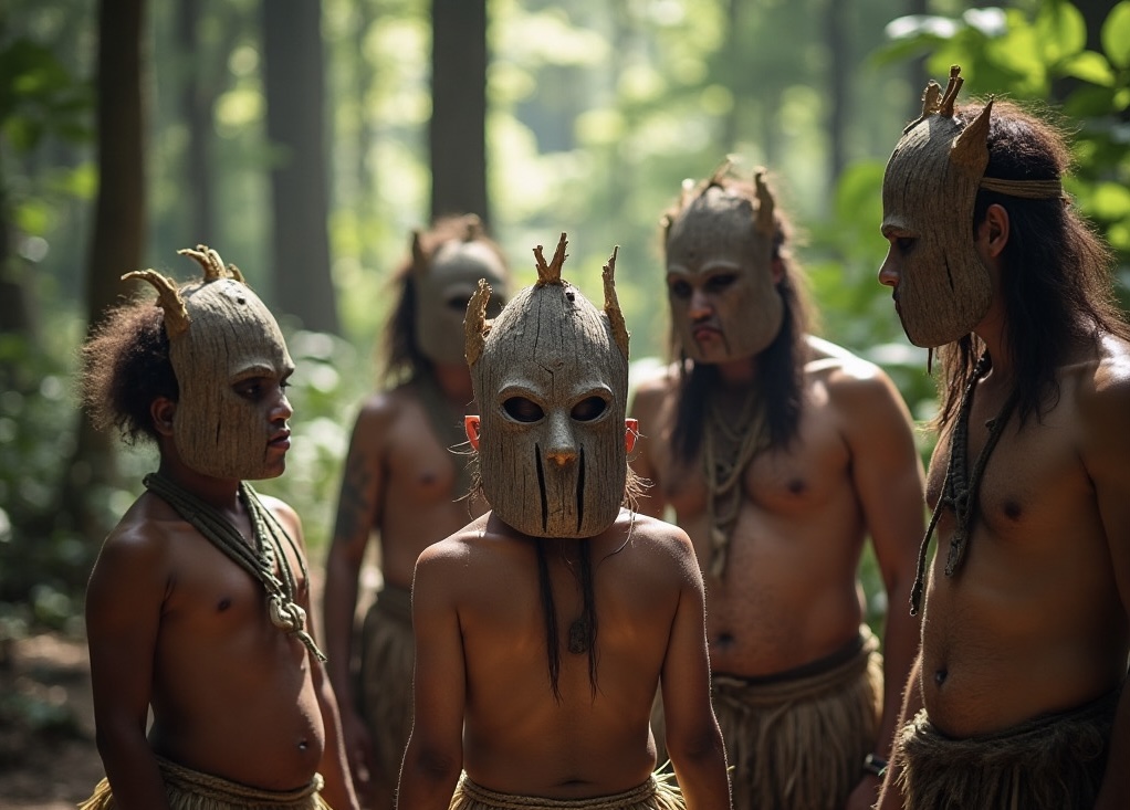 他们的成年仪式特别显眼,参加的人,会戴着用树皮做成的面具,走进那片,非常辽阔的森林,展开持续7天的生存挑战。
