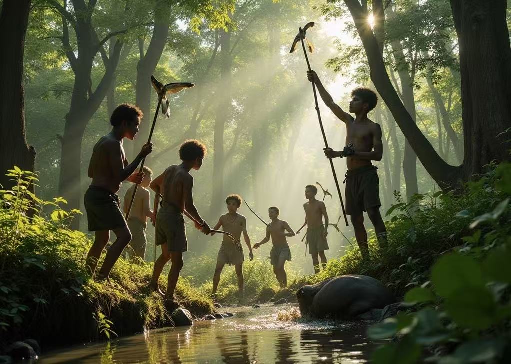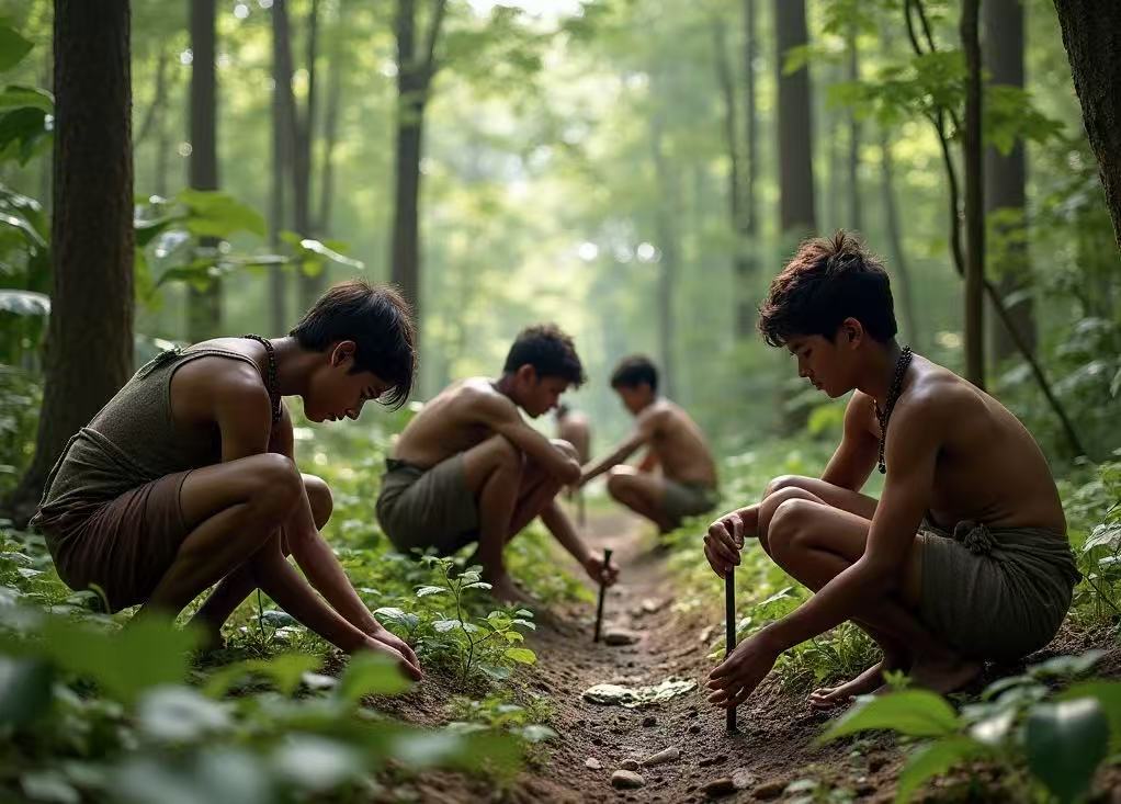 “绊索陷阱”是用坚韧的藤蔓或树枝制作一个绊索,将其固定在两棵树之间,高度大约在动物腰部的位置在绊索的中间设置一个触发装置。当动物触碰到绊索时,触发装置会松开,将动物绊倒并困住。