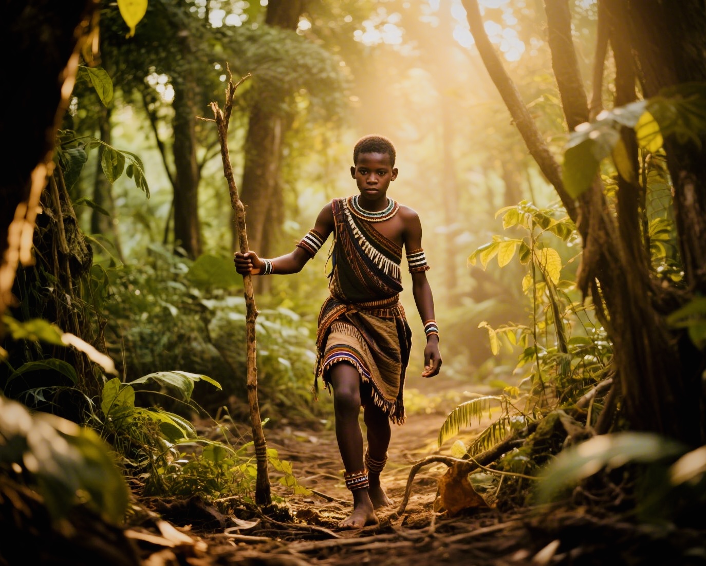 当现代的青少年沉醉于电子游戏之际,在非洲几内亚比绍的丛林深处,12岁的曼丁哥族少年“黑豹”阿姆达正轻轻地握着自己制作的弓箭,静静地、微微地屏住呼吸,目不转睛地瞄准着树冠间跃动的红疣猴。