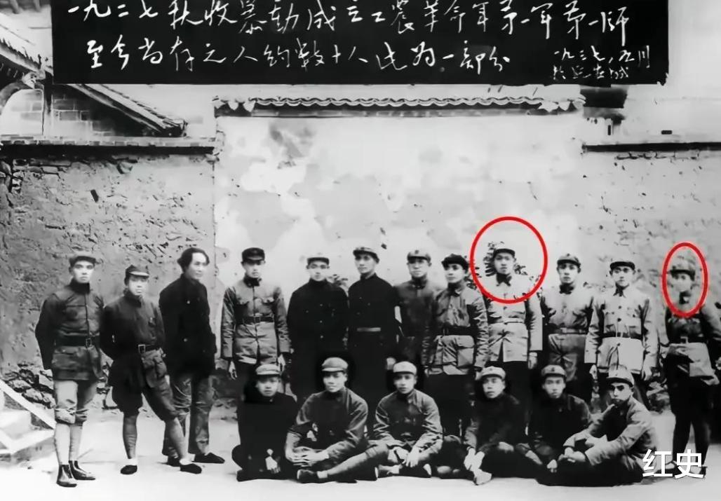 这些合影基本都是在吴家窑洞里拍的,也就是毛主席一家三口居住的那个窑洞。除了这两张合影之外,还有两张合影也是跟井冈山有关的,下面这张照片是一个大合影,贺子珍站在第二排,毛主席则坐在第一排。