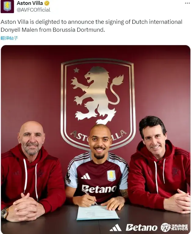 官方:维拉宣布从多特蒙德签下了唐耶尔-马伦。