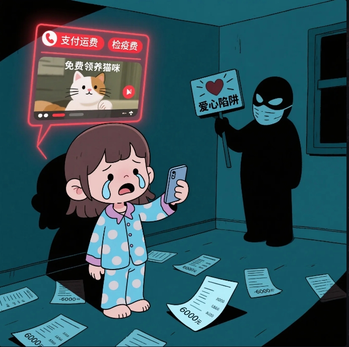 “免费领养猫咪”的广告,竟让10岁女孩落入连环套陷阱!近日,河南省汝阳县一名小学生小雨(化名)因轻信短视频平台上的“免费送猫”信息,被诈骗分子以“运费”“检疫费”等名义骗取六千余元。事件曝光后,宠物领养背后的黑色产业链浮出水面——从活体盲盒到捆绑消费贷,从“星期猫”到天价宠物殡葬,一场以“爱心”为名的资本围猎正在上演。