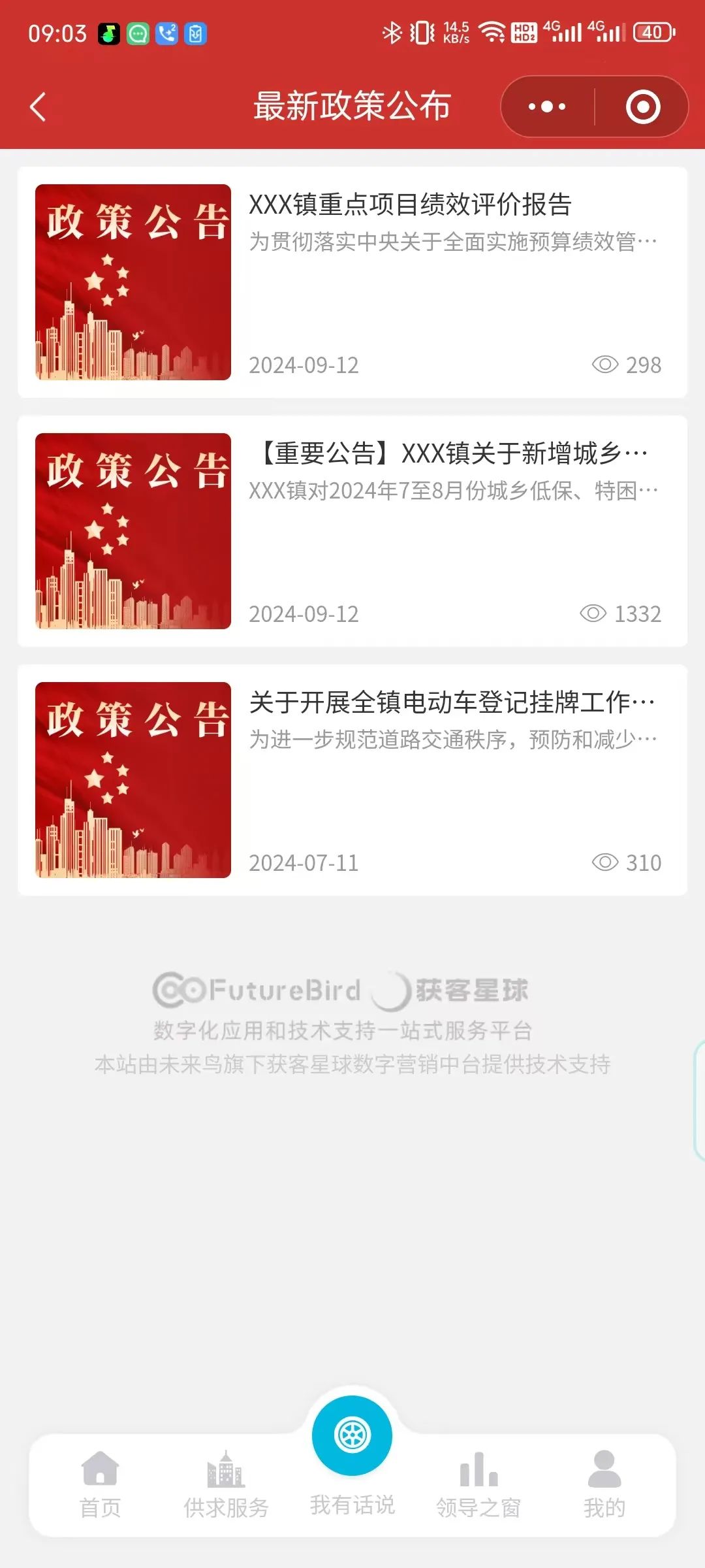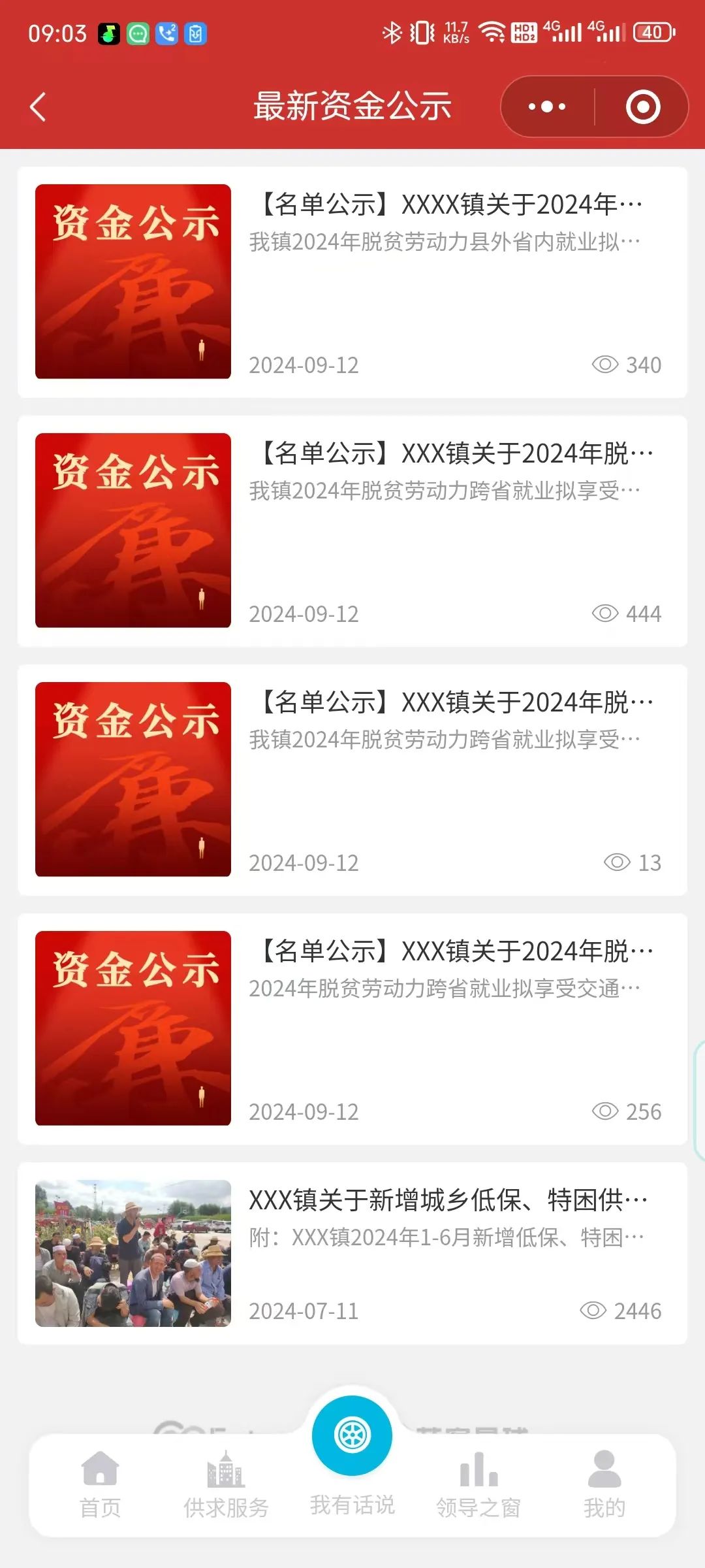 通过政务平台提供供求能力,方便区域的群众发布供应,需求等内容,可以设置为免费发布,也可以收费,也可以进行置顶。