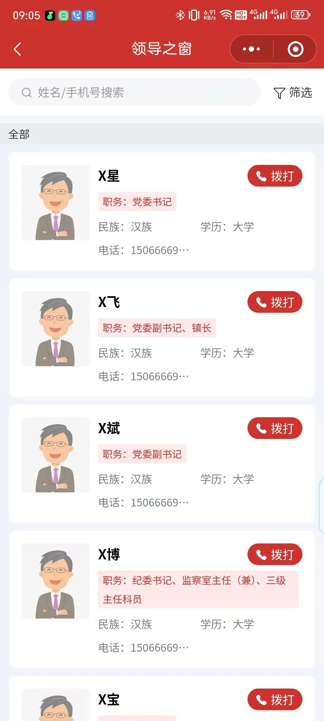 领导之窗列表筛选。可以自定义设置筛选组选项,以便于群众查找,如果名录人数过多,可以设置职位或部门,让群众更快速的查找。