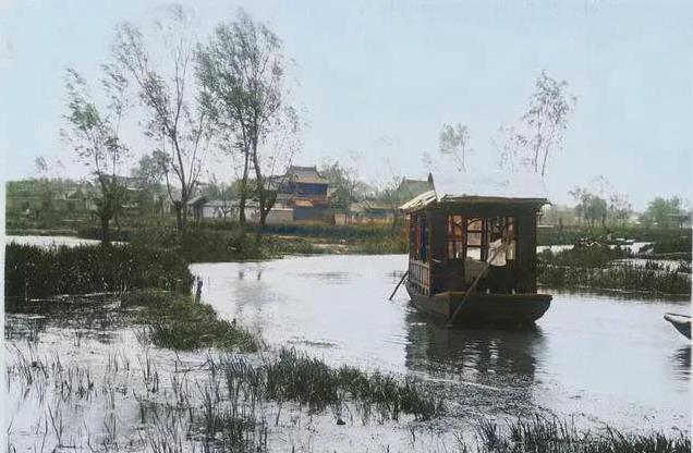 △1902年的金山寺,这是一座修建在护城河中的寺庙,只有5平方大小,紧邻现在的解放阁。