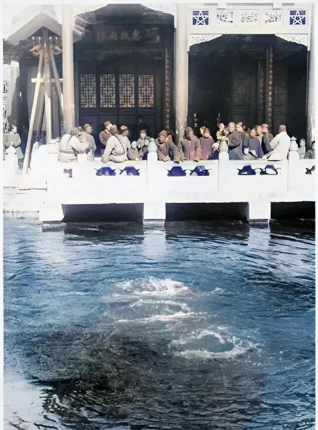 △1912年的趵突泉,湛蓝清澈,泉水翻涌,围观群众都是清朝人。
