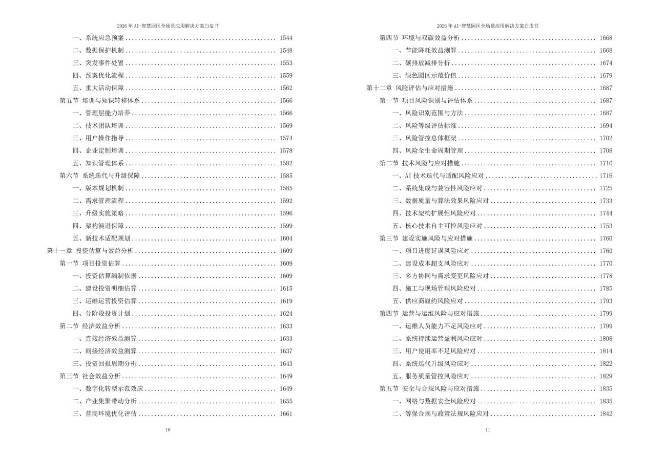 六、总结与展望《2026年AI+智慧园区全场景应用解决方案白皮书》详细阐述了智慧园区建设的背景、意义、整体建设架构以及AI技术在智慧园区中的应用价值。通过构建全场景覆盖的智慧园区解决方案,实现了园区运营的高效化、智能化与可持续发展。