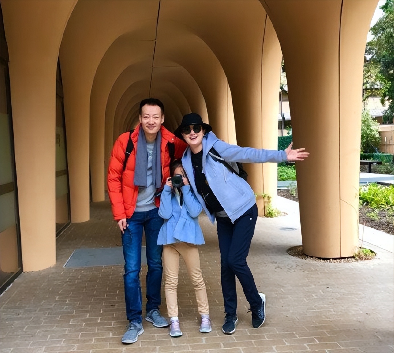 去年在澳洲商场,她穿着宽松的花裙子,和女儿头碰头挑发卡,辛柏青拎着大包小包当人形置物架,活像吉祥三宝出游。