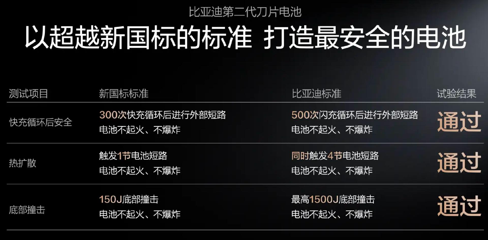 除了寿命,安全是另一个绕不开的话题,比亚迪这次拿出了三组测试数据,一个比一个狠。
