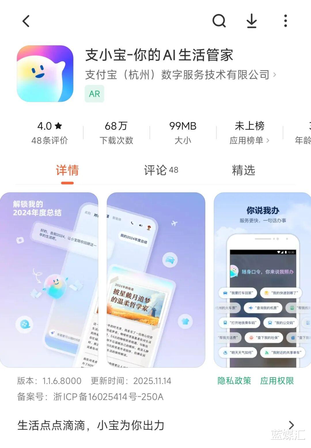 若在加上既有的「支小宝」,蚂蚁当前已经拥有了三个独立的C端AI APP,涵盖通用、垂类,以及支付宝原有生态场景的AI 原生应用。