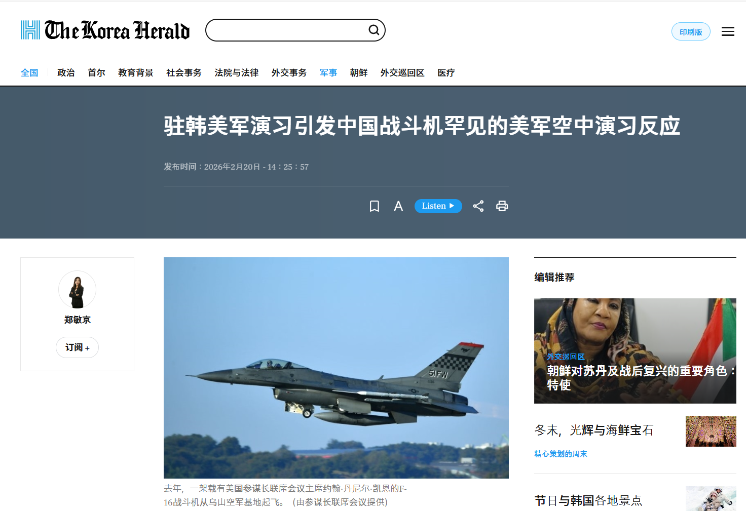 有防务观察人士表示,美军有大量驻韩空军资产,就部署在中国防空识别区附近,2月18日,中国大年初二,美军极不寻常起飞了10架F-16战斗机,在此活动的针对性很明显,此次演习可能旨在向中国发出某种“威胁”信号。