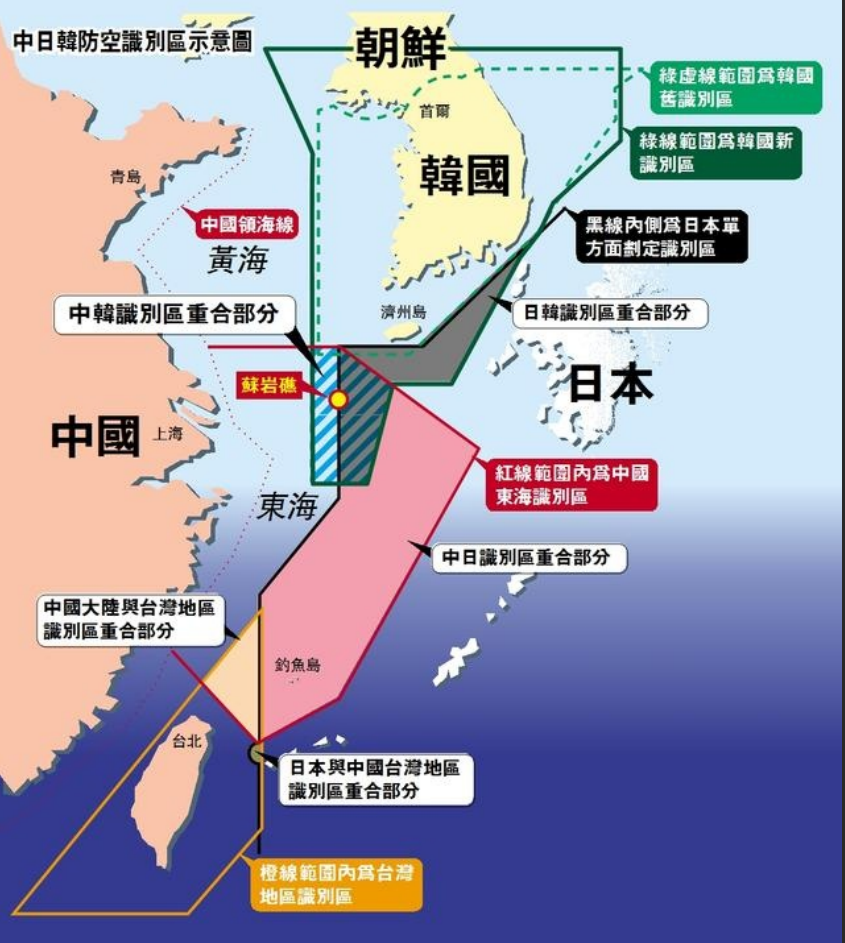 这是在中国11月23日划设东海防空识别区后,东北亚空域博弈的关键一步。韩国扩大的防空识别区,核心是覆盖苏岩礁,与中日防识区形成重叠。