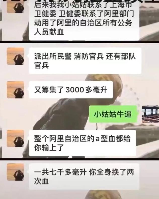 最新新闻里,小余丈夫澄清并不是找关系叫人来献血,而求助上海卫健委联系上上海援藏医生、然后在阿里政府和医院等多方帮助传播下,10月14-17日陆续有人来献血。