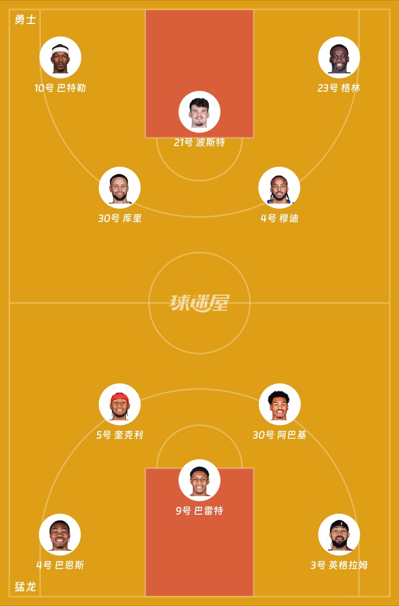 勇士:库里、巴特勒、格林、理查德、波杰姆斯基