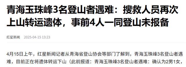 红星新闻2025-04-15——青海玉珠峰3名登山者遇难:搜救人员再次上山转运遗体,事前4人一同登山未报备