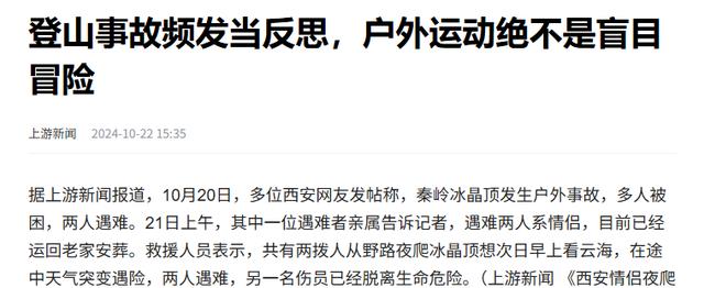 上游新闻2024-10-22——登山事故频发当反思,户外运动绝不是盲目冒险