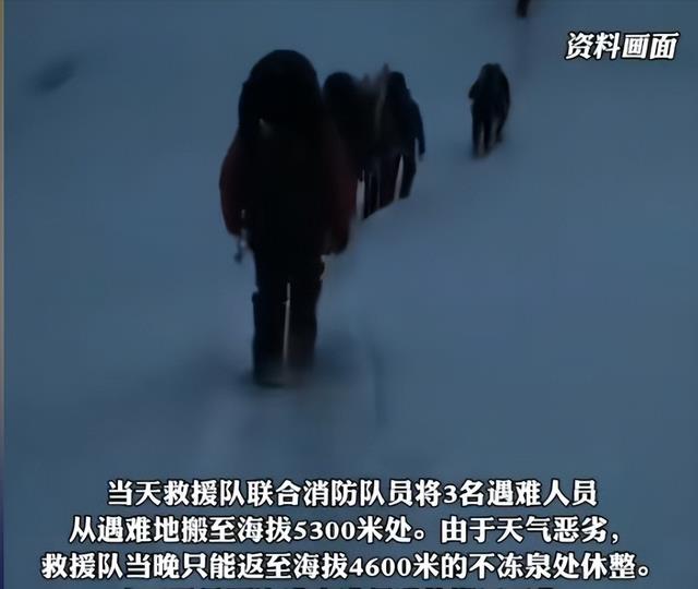 由于天气条件恶劣,救援队先将遗体转移到海拔5300米处,随后不得不在海拔4600米的不冻泉休整。