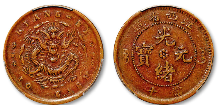 藏品名称:江西省造光绪尔宝竖花当十三星坐龙