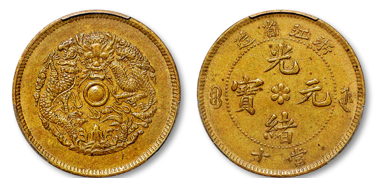 藏品名称:浙江省造光绪元宝当十中花小B宝黄铜