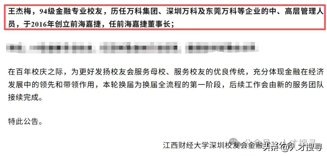 江财深圳校友会是这样介绍她的:王杰梅,94级金融专业校友,历任万科集团、深圳万科及东莞万科等企业的中、高层管理人员,于2016年创立前海嘉捷,任前海嘉捷董事长;