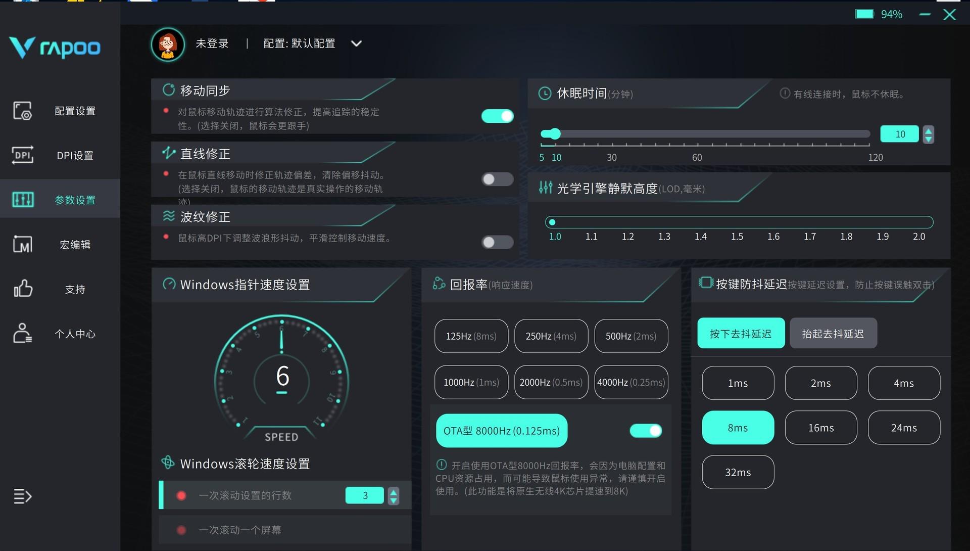 雷柏VT9Air鼠标的参数设置界面确实非常全面,允许用户根据个人偏好和使用场景进行细致的调整。