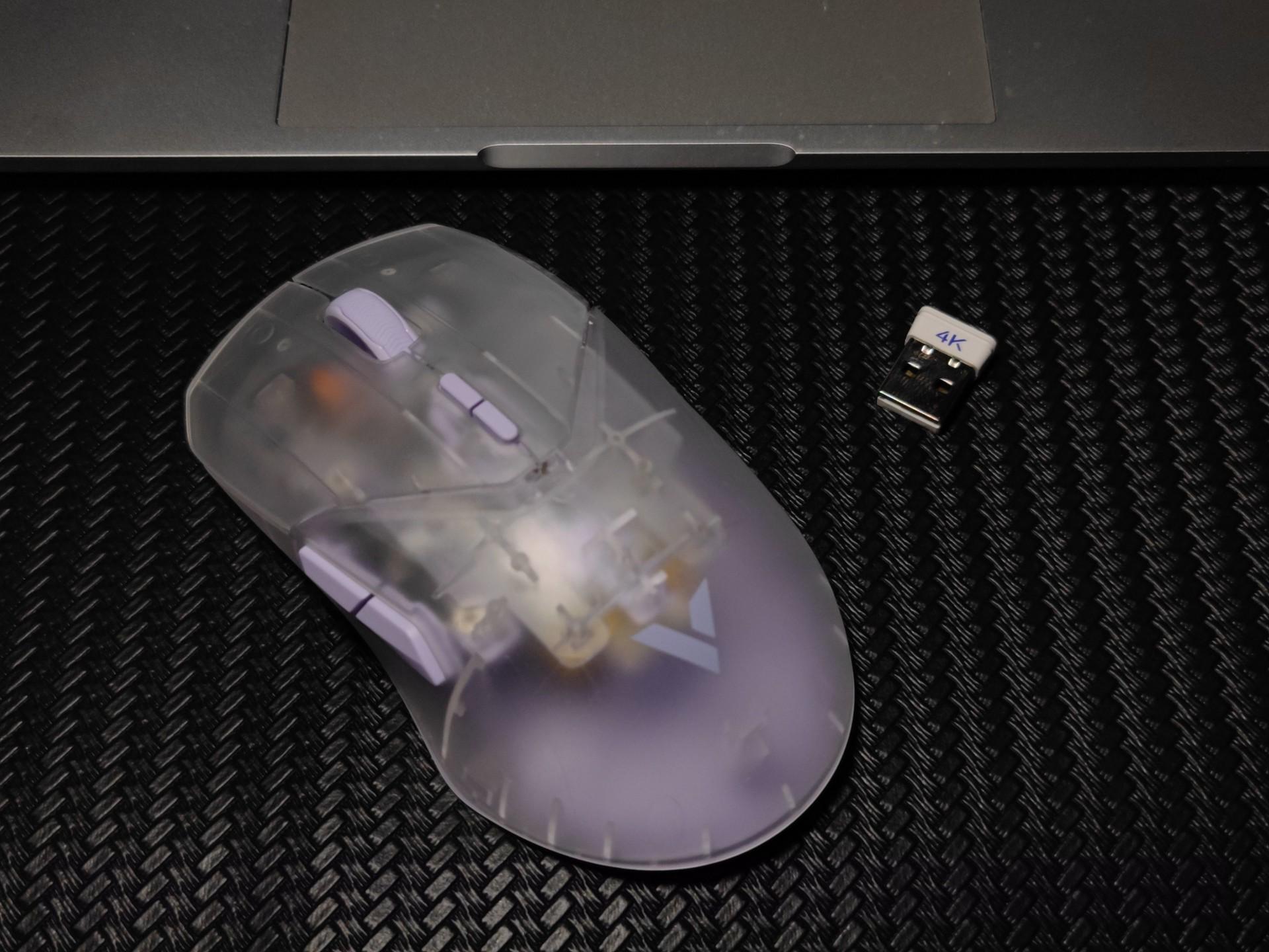 雷柏VT9 Air游戏鼠标自带一个4K接收器,可以通过这个接收器的指示灯判断鼠标电量,并且继承了VT9系列的核心技术,采纳了先进的C+分离式按键预压校调技术。