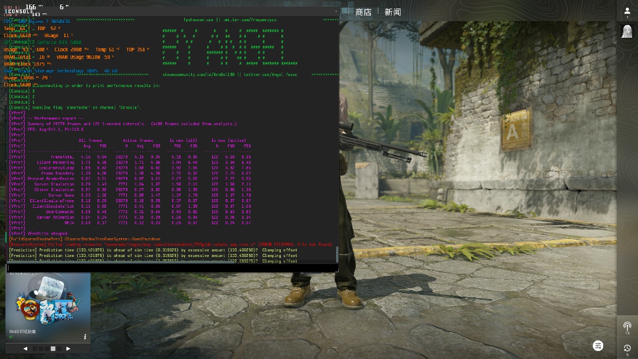 在老牌射击游戏《CS2》中,4K分辨率预设高画质下,运行创意工坊benchmark,iGame RTX 5080白火神平均帧能达到241帧左右,同时显存占用仅有10GB不到,对于《CS2》这款游戏来讲,这套配置可谓是轻松拿捏。