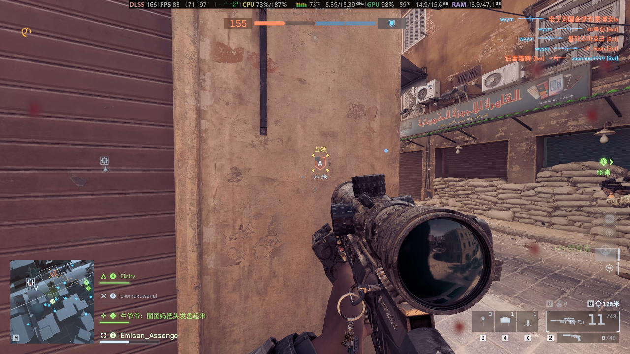 作为国内人气超高的第一人称射击游戏,这张iGame RTX 5080白火神在《三角洲行动》里的表现同样优秀,在4K分辨率预设极高画质,同时DLSS质量档设置为质量,大战场复杂场景且烟雾效果下能有170帧的优异表现,打开英伟达Reflex功能后,帧数延迟仅有6ms左右,显存占用也仅有11GB不到。