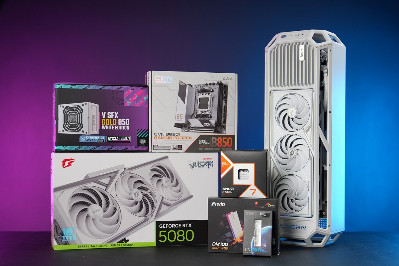 原生适配的iGame RTX 50系白火神Vulcan显卡(本次我们选用了为iGame GeForce RTX 5080 Vulcan W OC 16GB)