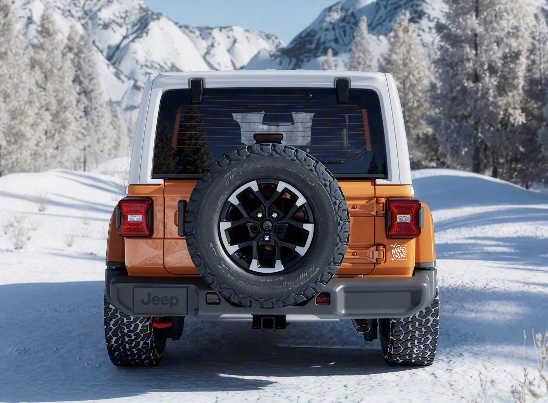 Jeep牧马人Whitecap特别版的车身采用了四门Jeep牧马人的设计,车顶采用了雪花白可拆卸式设计,车身加入了醒目的橙色车漆涂装。白色的车身条带加入了1941的镂空标识,前舱盖侧面加入了“RUBICON”下方还有“JEEP Whitecap”浮雕。造型夸张的、拱形的轮眉下方配备了18英寸的黑色铝合金锻造轮圈,匹配了285/70 R17(33英寸)规格的轮圈,最大可以支持35英寸(约315/70R17)的越野专业轮胎。该车的长宽高分别为分别为4882*1894*1854mm,轴距3008mm。通过性方面,Jeep牧马人Whitecap车型的接近角达到了34.8°,离去角为29.2°,并且还拥有760mm的涉水深度,通过性更加强大。