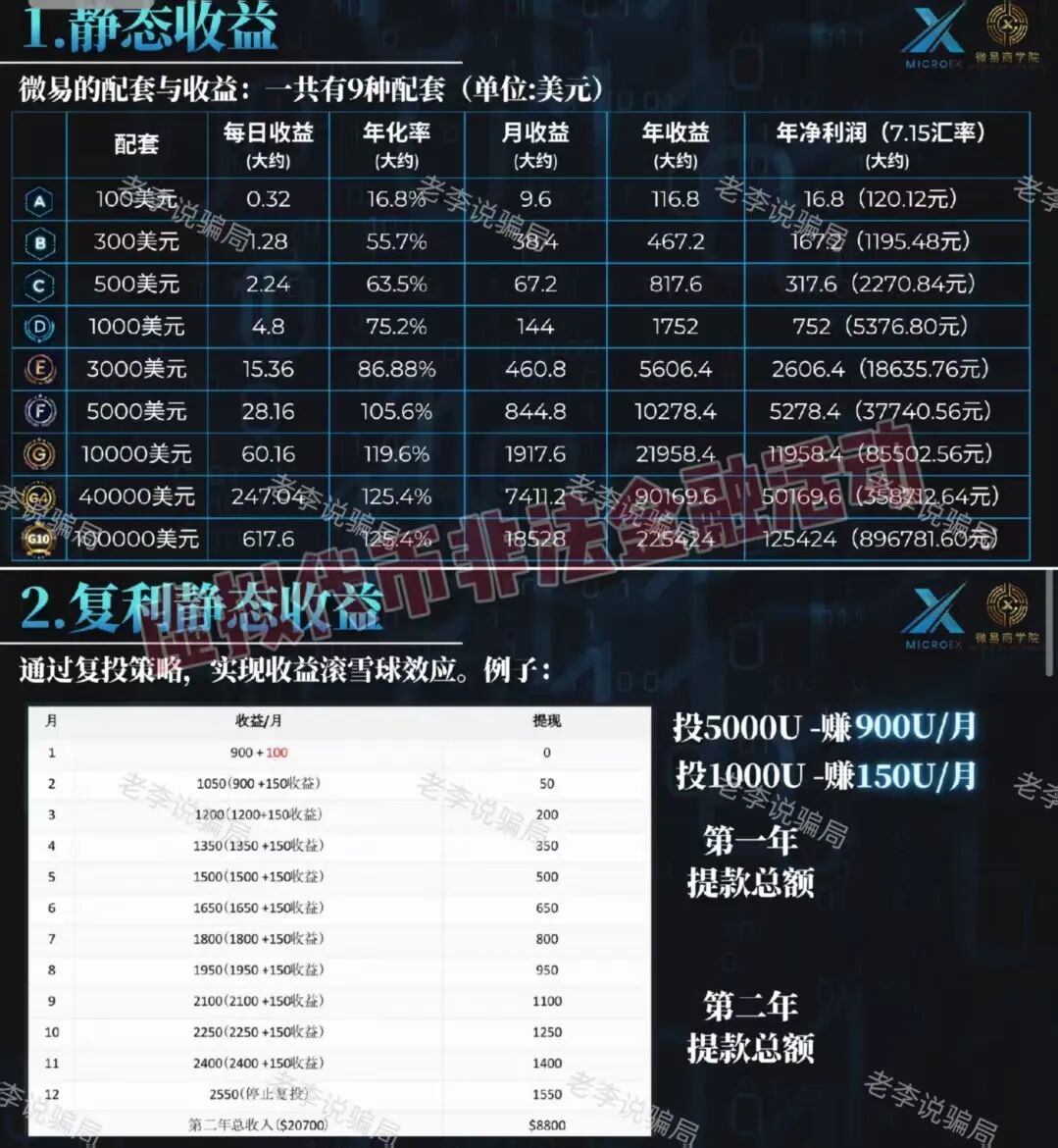 收益构成包含静态收益、复利收益、分享收益三类。但超高的回报率已经远超正规金融产品3%-10%的合理收益区间,违背金融基本规律。
