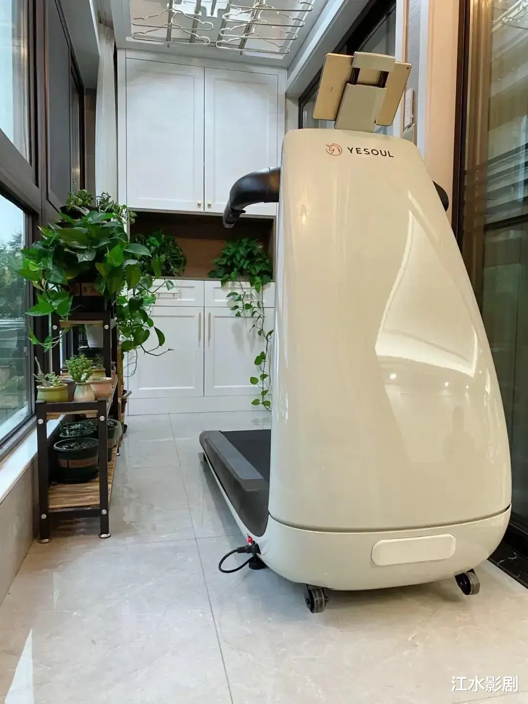 阳台设计充满智慧与匠心。储物柜巧妙嵌入洗衣机,提供充足收纳空间,保持阳台整洁美观。上方花架摆满绿植,增添自然色彩。阳台跑步机为日常生活增添健康活力,无论是清晨微风还是傍晚夕阳,都能在此享受运动乐趣,感受生活美好。