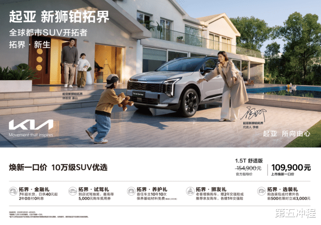值得关注的是,新狮铂拓界延续了悦达起亚备受好评的一口价服务政策,即日起至4月30日,消费者购车即享全国统一“焕新一口价”10.99万元起!同时还可享金融礼、试驾礼、养护礼、狮友礼、选装礼5大尊享礼遇,这不仅体现了悦达起亚对中国用户的满满诚意,也是其“在中国、为中国”战略下,以品质服务不断提升用户体验的坚定承诺。
