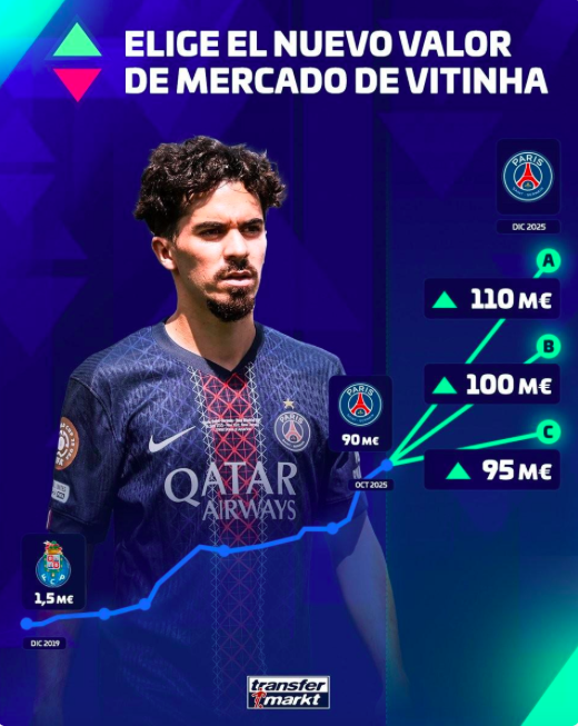 论星光,身价1.1亿欧元的维蒂亚尼是法甲头牌,直接将新科金球先生登贝莱PK下去了,谈数据,在本赛季的30场比赛中贡献了6粒进球和11次助攻,是法甲的助攻王。值得一提的是,维蒂尼亚最近当选了2025年度葡萄牙最佳球员。