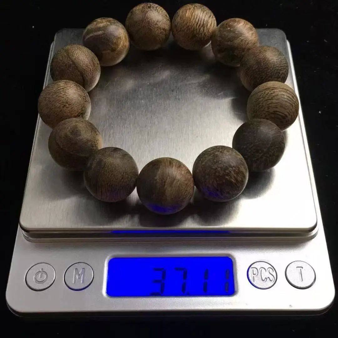 再一个是看重量。沉香的油脂含量决定了它的重量,油脂多的自然更香更值钱。比如1.6cm直径的手串:10~15克是入门级,价格在1000~3000元;15~20克属普通级,价格大约3000~10000元;20~25克为中高端,价格大多在1~2万元;25克以上属高端,动辄上万元甚至十几万,极其稀有。