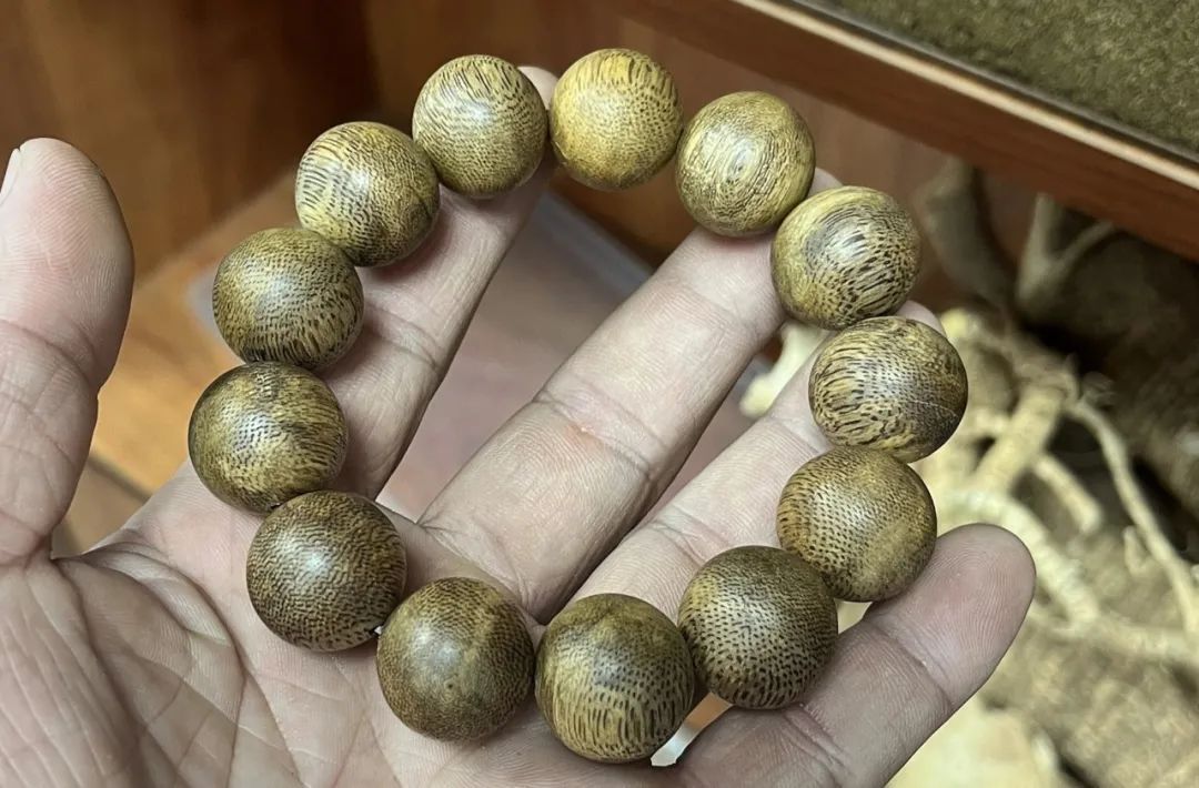 还有一点是闻香。每种产地的沉香香味都不同,有的清凉,有的甘甜,适合根据个人喜好选择。真正的沉香是越戴越香、越养越亮,不是“天生黑”。