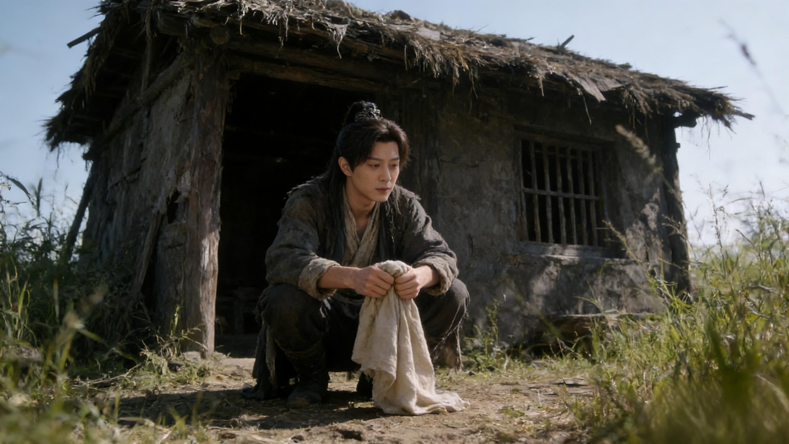 茅屋的门开着,傅时瑾正坐在门槛上,手里拿着那块褪色的素色棉布,呆呆地看着远方。他不记得自己是从哪里得来的,只知道握着这块布,心里会隐隐作痛。