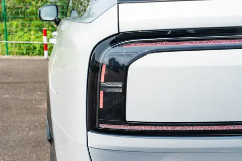 车尾的 “天地门” 绝对是个大亮点,分两段开启,上面那截打开的时候还带点小尾翼的弧度,下面这段藏着电动脚踏,实用性拉满。尾灯叫 “环幕星钻贯穿尾灯”,用激光雕刻出了 42242 个钻石切割型面,晚上解锁的时候,灯光闪起来就像漫天星河,不过密集恐惧症患者看了可能会有点难受。对我来说,更实用的是下尾门能一键放平,承重能到 300 公斤以上,平时钓鱼的时候可以放渔具,露营的时候摆东西也方便,就算站上个人拍照也稳得很,我试过站在上面拍风景,车身一点晃动都没有。