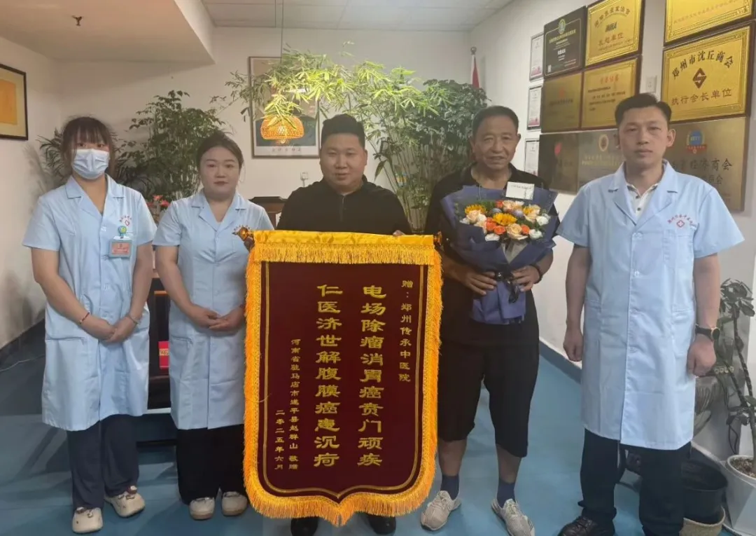 康复后的赵叔,带着鲜花与锦旗,满怀感激“电场除瘤消胃癌贲门顽疾,仁医济世解腹膜癌患沉疴”,锦旗上的每一个字,都饱含着他对医护人员和天特肿瘤电场仪的深深谢意。如今的赵叔,精神矍铄,笑容满面,手持花束的他,已然成为抗癌希望的传递者。
