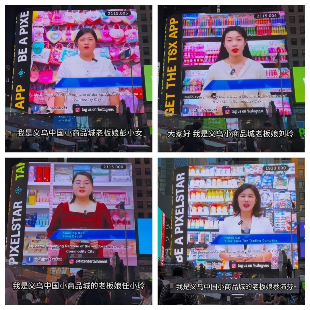 最让人津津乐道的,要数义乌老板娘们亮相纽约时代广场的故事。这是义乌“品牌出海”的举措之一,让义乌“世界超市”的形象更加深入人心。雅佳玩具的蔡沛芬笑着回忆:“客户看到我亮相纽约时代广场大屏,纷纷给我发信息祝贺。一段时间没来订货的波兰客户也突然给我发来视频截图,询问视频背景中的几款玩具,让我发产品的报价单。”