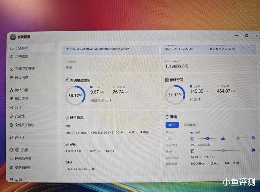 说起这个N3450,垃圾佬肯定不陌生,TDP只有6W,待机功耗也就5W左右。现在看性能是拉跨了点,但主打的就是一个省电和稳定。而且集成的HD500显卡,支持飞牛影视硬解,你把它扔角落里,24小时开着下电影、存照片,完全没压力,电费几乎可以忽略不计。