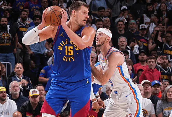 下半场,雷霆的三分命中率开始下降,亚历山大单节砍下 8 分。不过掘金队约基奇在内线持续施压,拿下 6 分 5 篮板,穆雷也命中三分,帮助球队将分差缩小到 3 分(83 比 80)。末节决战,双方比分交替领先。雷霆一度由杰伦・威廉姆斯连得 5 分,以 102 比 99 领先。但掘金队戈登在最后 76 秒命中关键三分,将比分扳平为 102 比 102,两队进入加时赛。在常规时间里,约基奇的表现不尽如人意,三分球 10 投 0 中, 8 次失误严重影响了球队的进攻节奏,且在比赛中能明显看出其疲态。