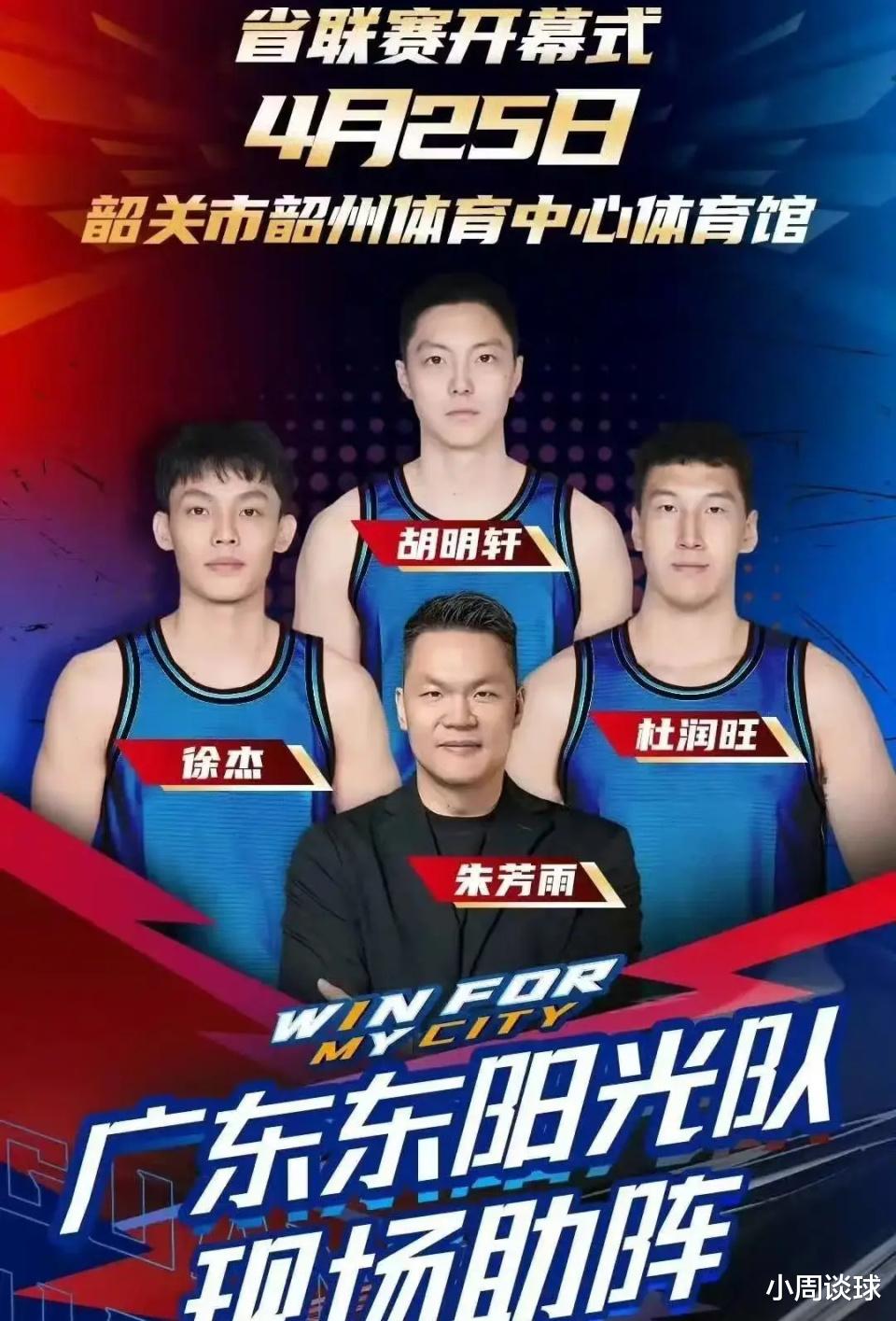 与此同时,广东队的总经理朱芳雨也带领徐杰、胡明轩和杜润旺三名国家队成员参加了广东省篮球联赛的活动。这个联赛属于半职业性质的联赛,里边有大量的CBA现役球员或退役球员、还有国青队球员以及CUBAL的球员等,广东省的民间篮球氛围浓厚,这样的活动也可以为今年的大运会非专业组选材。而朱芳雨也受邀成为了今年的广东省篮球联赛的赛事推荐官,他带领广东队球员参加这样的活动大概率只是加油助威,和现场的球迷互动烘托气氛,而不是真正下场去打球。