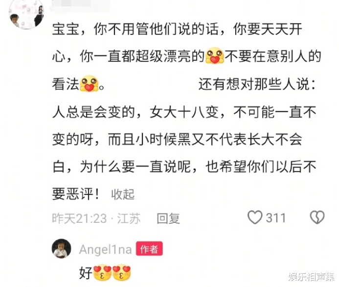 近期,甜馨因为在视频中露面,让人看出肤色变白、五官立体,所以有人就说白是不是整容了,她直接回击说黄种人天生肤色变化,并强调父母给的就是最好的基因。
