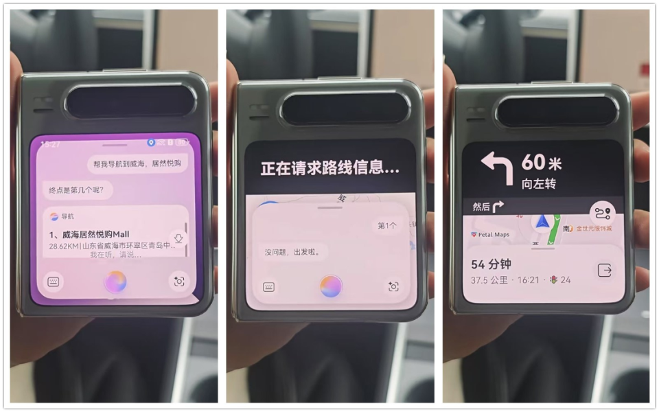 甚至我连目的地都不用打,直接告诉小艺想要去哪,就可以直接导航到目的地。这在开车的时候太管用了,我双手不能脱离方向盘,但用华为Pura X外屏导航只需动口不动手,安全又方便。