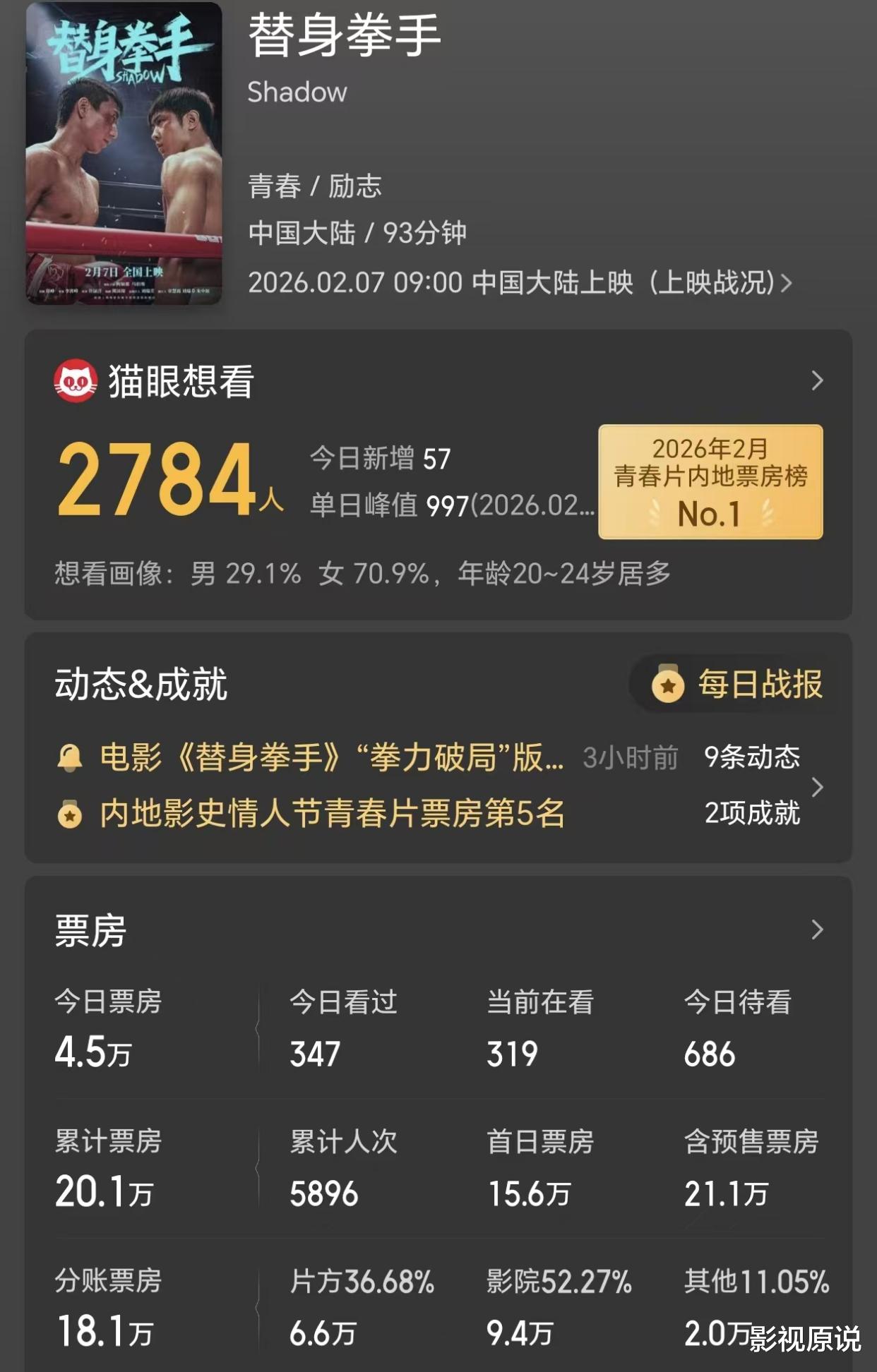 在这样一种强大的阵容之下,《替身拳手》本应能够创造一个相对比较可观的票房成绩,至少不会惨败。可没想到的是,该片上映了近两天,票房却只有20万人民币。