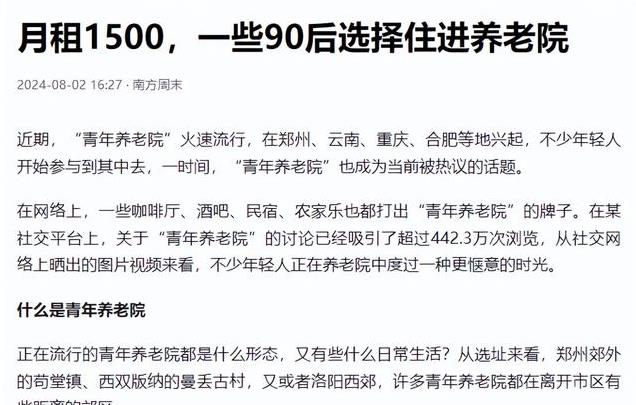 还有网友担心这种行为会对年轻人产生不良的示范效应,导致更多的年轻人放弃努力,追求安逸的生活。他们认为,养老院是为那些真正需要照顾的老年人准备的,年轻人不应该过早地占用这些资源。