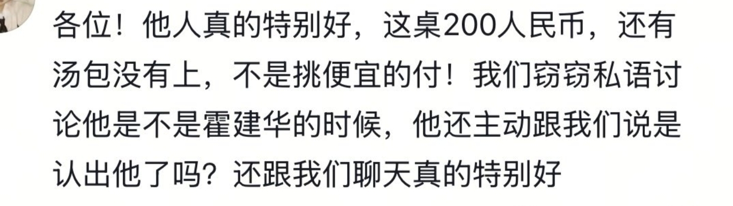 早餐店老板后来也证实,霍建华是店里的常客经常一个人过来吃早餐,性格特别低调。这次买单也不是刻意作秀,只是他的一贯风格。