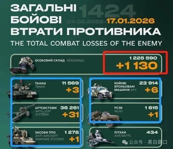 俄乌战争第1424天(2026年1月17日),过去24小时大事件概述如下: